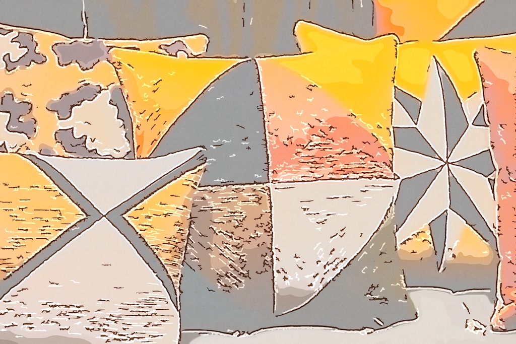 Gabrielle Soyer : j’achète des coussins pour ma mère et j’achète deux tapisseries que je n’ai jamais montré à qui que ce soit c’était comme mon petit secret et qui est ressorti en quand est-ce que j’ai été licenciée en 2006 et j’ai ressorti donc de 1989 deux tapisseries identiques sauf que le fond de couleur changeait et là je me suis dit mais c’est ça que je veux faire en coussin. J’en avais parlé à personne et jamais montré à qui que ce soit.